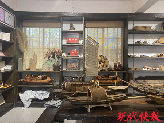 徐海林曾經(jīng)的工作室不到20平方米,地方狹小、燈光昏暗,收來(lái)的大小船只無(wú)處可去,只好停放在附近河道、村路邊。后來(lái),在當(dāng)?shù)卣拇罅χС窒?,他有了新的工作室。同時(shí)通過(guò)利用廢舊廠房改造,蘇州·陽(yáng)澄湖舟船文化館應(yīng)運(yùn)而生,徐海林創(chuàng)作的各種船模也有了更大的展示空間。