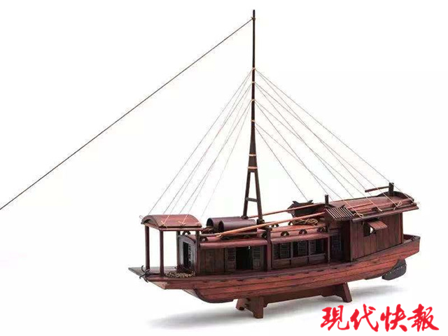 徐海林還清楚地記得他制作的第一艘船模“黃豆船”。“‘黃豆船’是村上裝運(yùn)糧食的最普通的船。”徐海林介紹。雖說(shuō)船見(jiàn)得多了,可把船做成模型的,大家還是頭一回見(jiàn),“當(dāng)時(shí)村里人都跑到我家來(lái)看新鮮。”