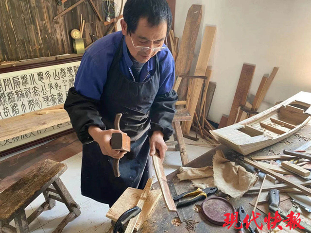 除了嘉興“南湖紅船”,徐海林還制作了四渡赤水的木帆船、夜送“江抗”軍的殷家浜船、強(qiáng)渡大渡河的木船……而這些船模大小形狀各異,卻都做工精巧。