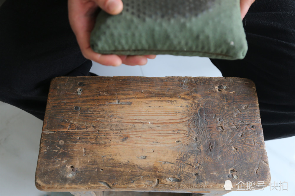 據(jù)了解,李激光練功用的是一袋鋼球和一把鐵錘。每天在規(guī)定的時(shí)間,就用右手的手掌、寸指等不停擊打鋼球袋,然后,再用鐵錘敲打手背。由于長(zhǎng)期反復(fù)練習(xí),李激光的右手手指、手背、掌心長(zhǎng)滿老繭,猛的看上去,他的右手象“腫”了一樣。但是用手摸上去,卻感到手背上“腫”的地方都很結(jié)實(shí)。圖為長(zhǎng)期練習(xí)鋼珠袋凳子都被磨的發(fā)亮。