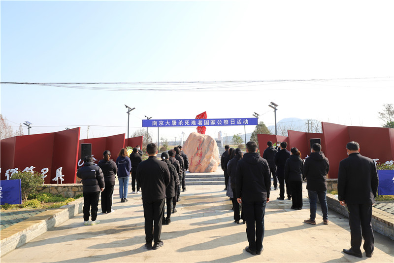 12月13日,山河肅穆,草木含悲。為緬懷在中國人民抗日戰(zhàn)爭中英勇獻身的英烈和所有為中國人民抗日戰(zhàn)爭勝利做出貢獻的人們,悼念南京大屠殺死難者和所有在日本帝國主義侵華戰(zhàn)爭期間慘遭殺戮的死難同胞,江寧區(qū)湖熟街道全國第八個“國家公祭日”紀念活動在丹桂村赤山烽火廣場舉行。