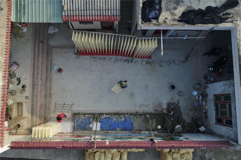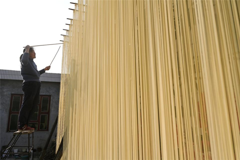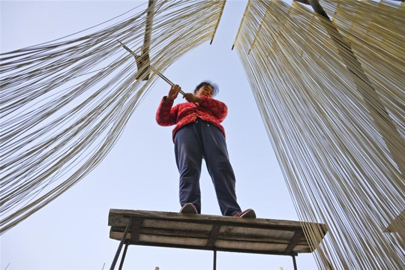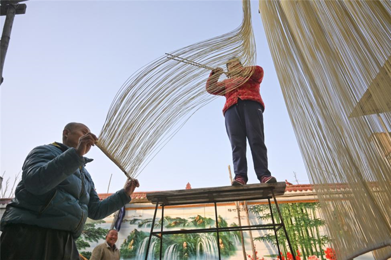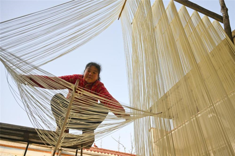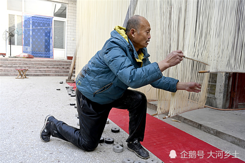 常旗營(yíng)是山西永濟(jì)開張鎮(zhèn)的一個(gè)村莊,由古代的一個(gè)兵營(yíng)發(fā)展而來,因村民都掌握一門做掛面的手藝而被稱為“手工掛面村”,據(jù)說村里做手工掛面的歷史已經(jīng)有百余年,幾乎家家戶戶都能做出條細(xì)如絲、筋道耐煮、易于消化的手工掛面。七、八年前,作為攝影愛好者,我們?cè)?jīng)來到村里拍攝制作掛面的場(chǎng)景,當(dāng)時(shí)接待我們的就是陳世民夫婦,所以我們之間也算是老熟人了。