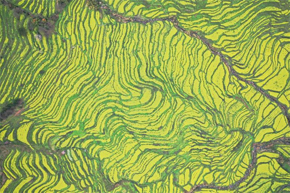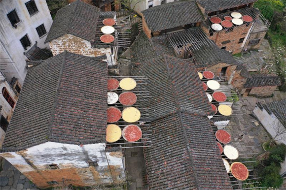 白墻黛瓦民居的屋頂搭起了曬架,圓圓曬匾里五彩繽紛豐收果實的組合,繪就出世界獨一無二的"曬秋"農(nóng)俗景觀,加上梯田油菜花,高度飽和豐富斑讕的色彩,是江西省婺源縣江灣鎮(zhèn)篁嶺景區(qū)最美的調(diào)色板,來這里您就可以享受一場視覺盛宴。