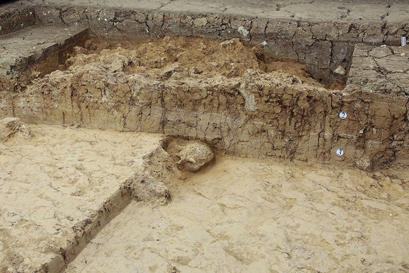 河南開封州橋與汴河遺址中明代晚期汴河河道堆積遺跡(國家文物局供圖)。