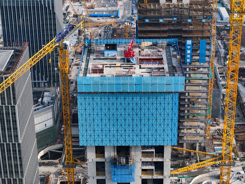 當(dāng)日,在江蘇省南京市江北新金融中心一期項(xiàng)目施工現(xiàn)場,承建方中建三局運(yùn)用“空中造樓機(jī)”進(jìn)行項(xiàng)目封頂前的最后一次頂升作業(yè),各項(xiàng)施工穩(wěn)步推進(jìn)。據(jù)介紹,該項(xiàng)目建造采用智能集成“空中造樓機(jī)”,提高了高層建筑施工的機(jī)械化、智能化及綠色施工水平,讓“高空作業(yè)”變?yōu)椤笆覂?nèi)施工”,施工效能提升約20%。