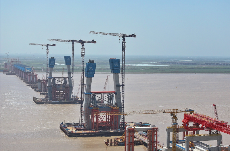 當日,由中鐵大橋局承建的崇啟公鐵長江大橋4號主塔第17節(jié)澆筑完成,塔身高度突破100米,大橋進入上塔柱施工階段。崇啟公鐵長江大橋是滬渝蓉高速鐵路全線重點控制性工程,大橋全長4.09公里,橫跨長江北支,是江蘇啟東與上海崇明的主要連接通道。
