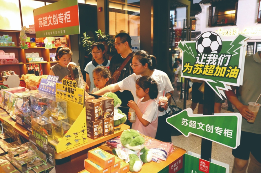 6月28日晚,無錫清名橋景區(qū)商場內開設了蘇超文創(chuàng)專柜。 ?毛偉駿 攝 視覺江蘇網(wǎng)供圖
