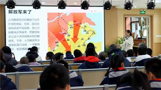 隨后,團隊成員組織學生們圍繞“渡江勝利與南京解放”進行了熱烈的討論,紛紛表達了自己的人生理想和個人目標,分享了自己的感悟與心得。